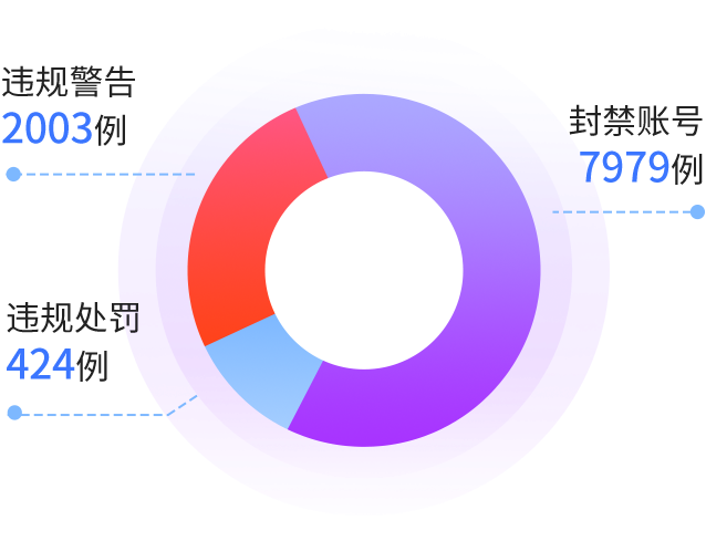 2022年12月,抖你APP净网行动累计处理违规案例10406例,违规警告2003例,违规处罚424例, 封禁账号7979例。